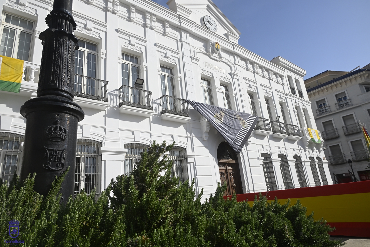 La fachada del Ayuntamiento de Tomelloso luce este año más romera que nunca para recibir a la Stma. Virgen de las Viñas, patrona de la ciudad, que este próximo domingo será trasladada desde su santuario de Pinilla a la parroquia de la Asunción tras la tradicional jornada romera que congregará allí a miles de personas.
